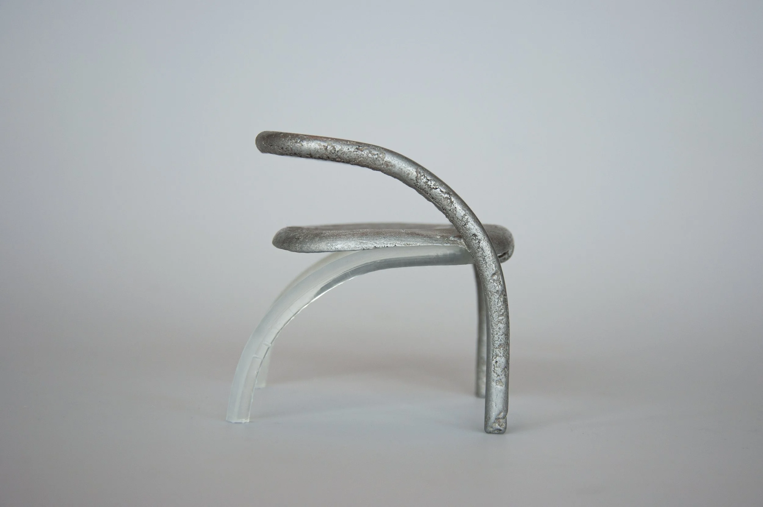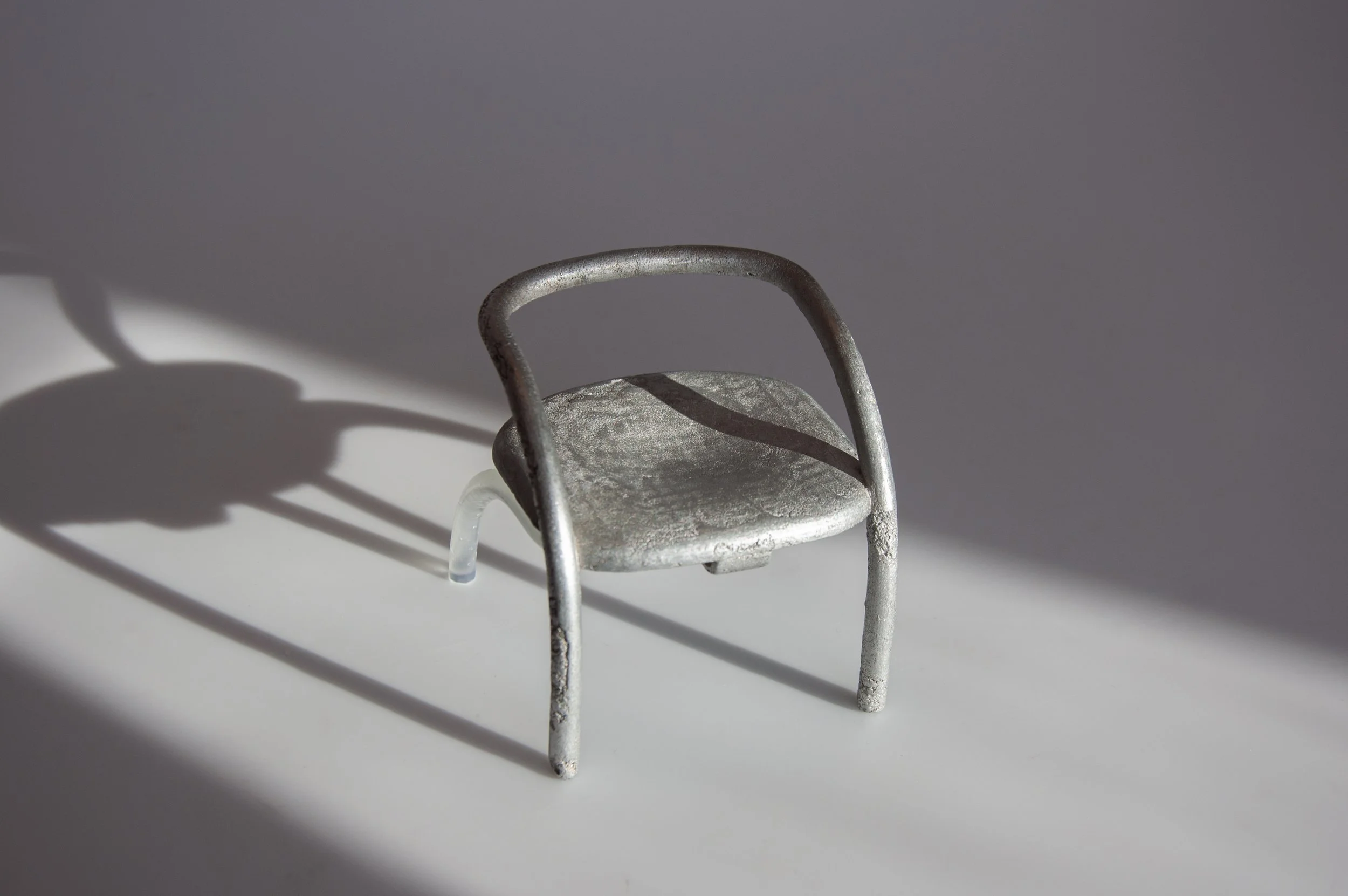Iterum embraces the raw character of industrial waste and lets its material history guide the form. The chair’s components are intentionally shaped with complex geometries that would be difficult to achieve through traditional methods alone, allowing digital tools to push craft into new visual territory. The chair’s components use digitally generated geometries, featuring controlled wall thicknesses and draft angles that exploit the precision achievable through Lost PLA-casting.